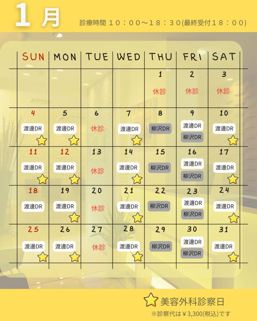 来年1月から美容外科のご相談は下記の日程で行いますので、ご確認ください。